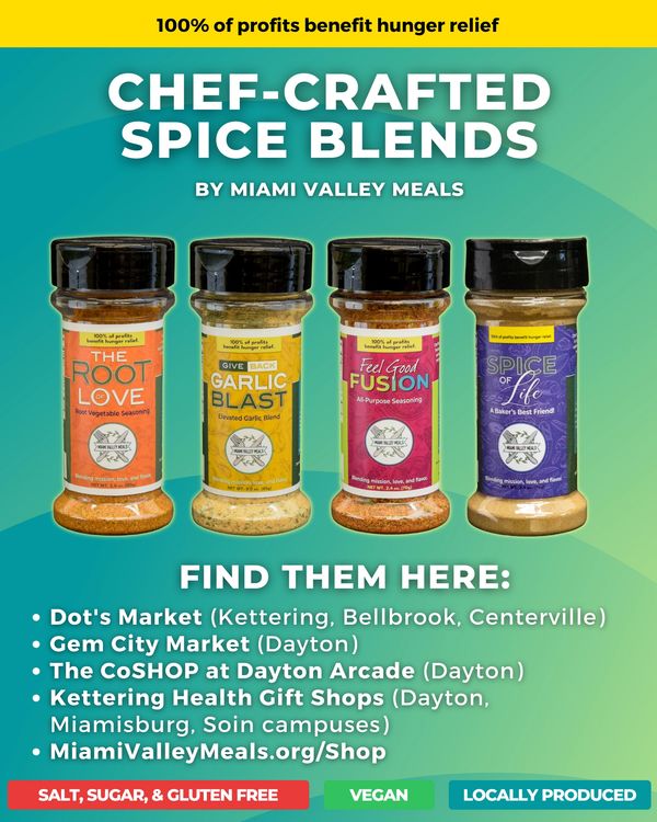 These blends were developed by our chefs and are produced locally by Big Axe Spice. All profits benefit our mission to transform donated food into nutritious meals for the hungry.
